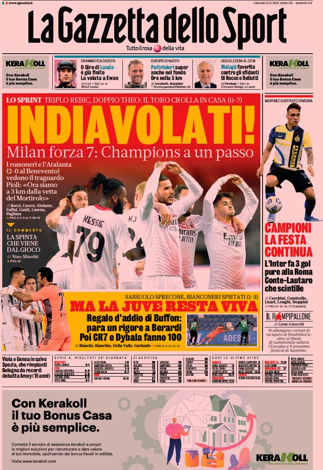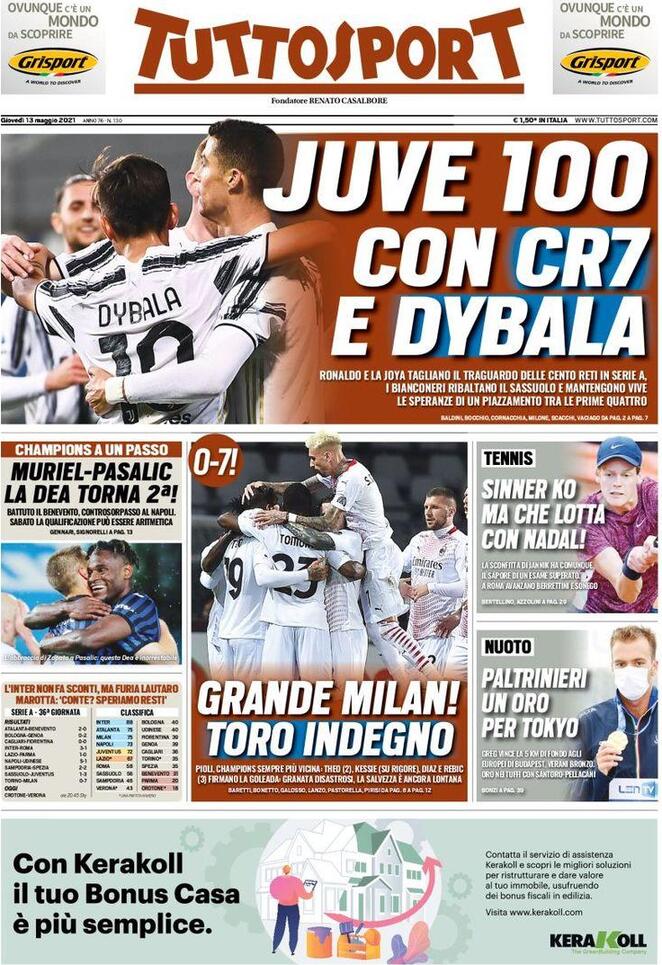 Rassegna stampa Juve: prime pagine quotidiani sportivi - 13 maggio 2021