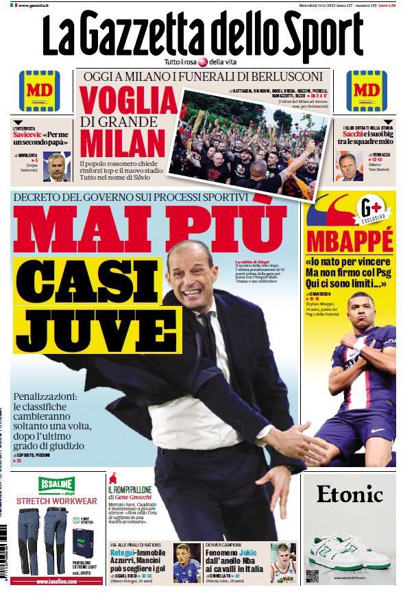 Rassegna stampa Juve: prime pagine quotidiani – 14 giugno 2023