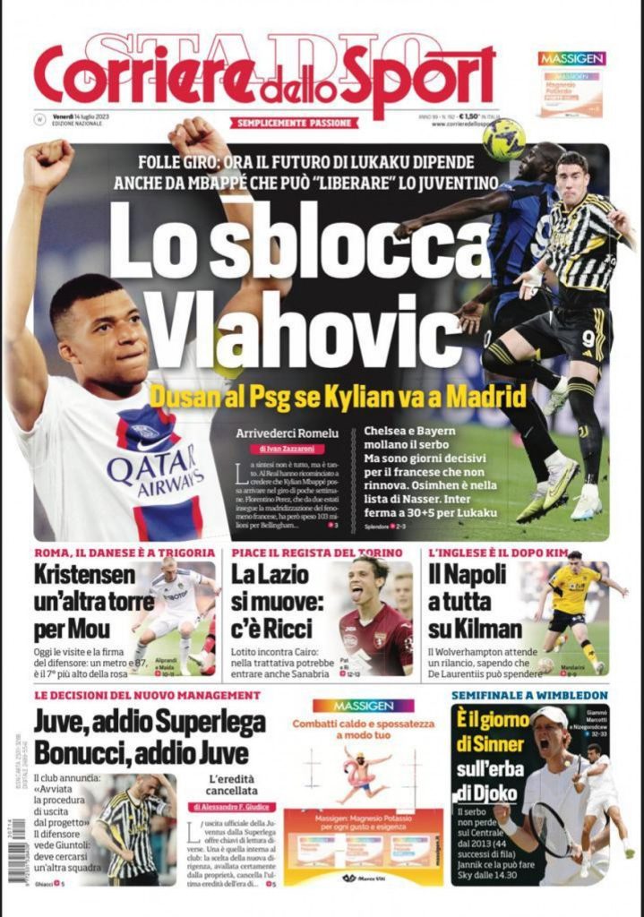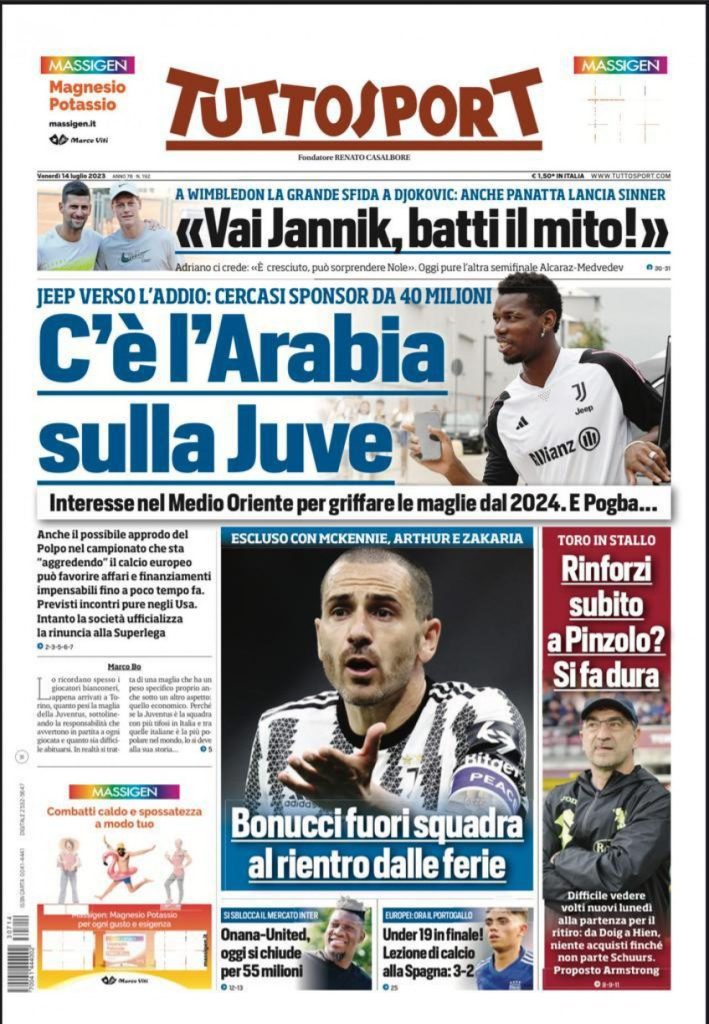 Rassegna stampa Juve: prime pagine quotidiani sportivi – 14 luglio 2023