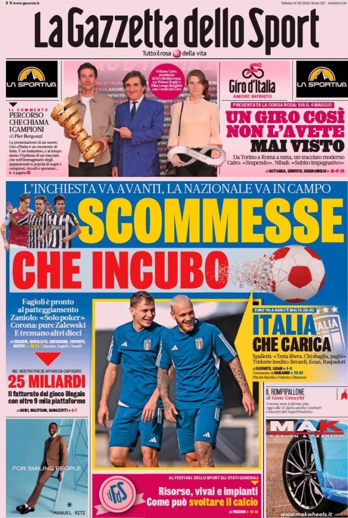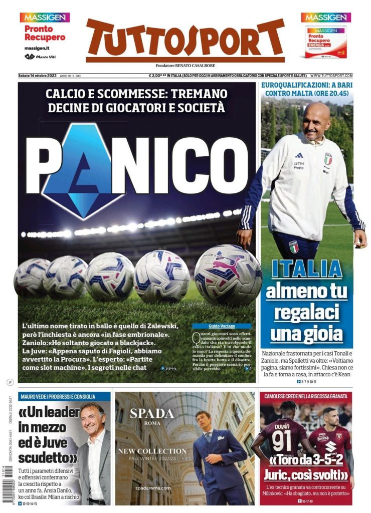 Rassegna stampa Juve: prime pagine quotidiani sportivi - 14 ottobre 2023