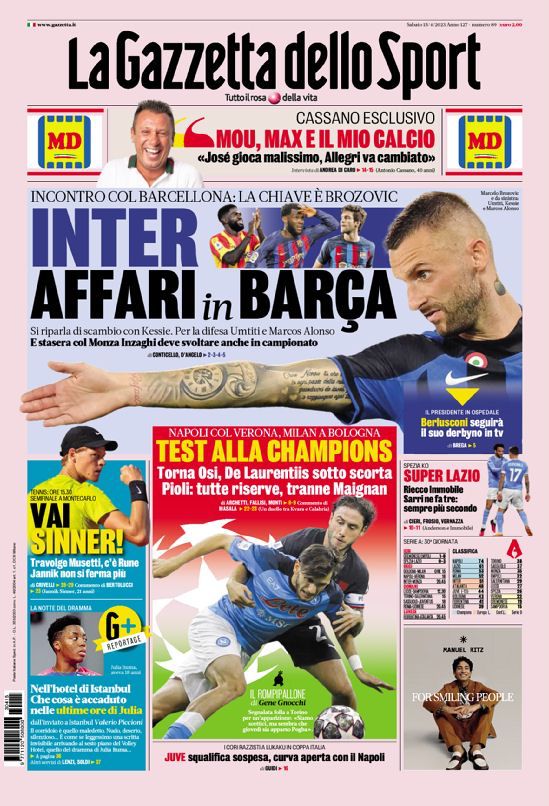 Le prime pagine di alcuni dei principali quotidiani sportivi nazionali ed internazionali.
