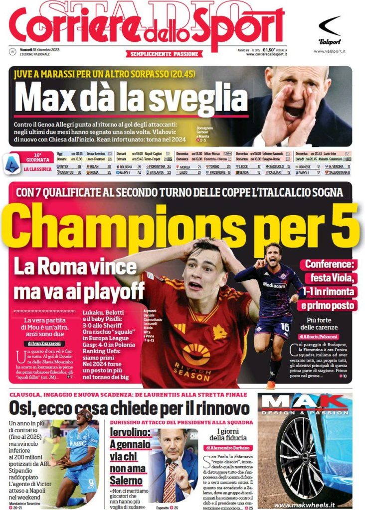 Rassegna stampa Juve: prime pagine quotidiani sportivi - 15 dicembre