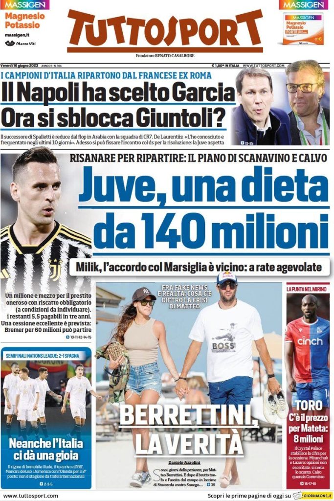 Rassegna stampa Juve: prime pagine quotidiani sportivi – 16 giugno 2023