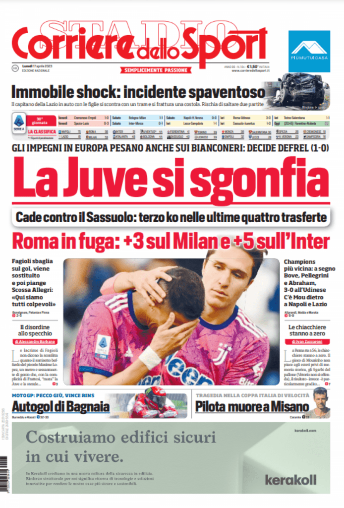 Rassegna stampa Juve: le prime pagine dei quotidiani sportivi italiani ed internazionali di lunedì 17 aprile 2023