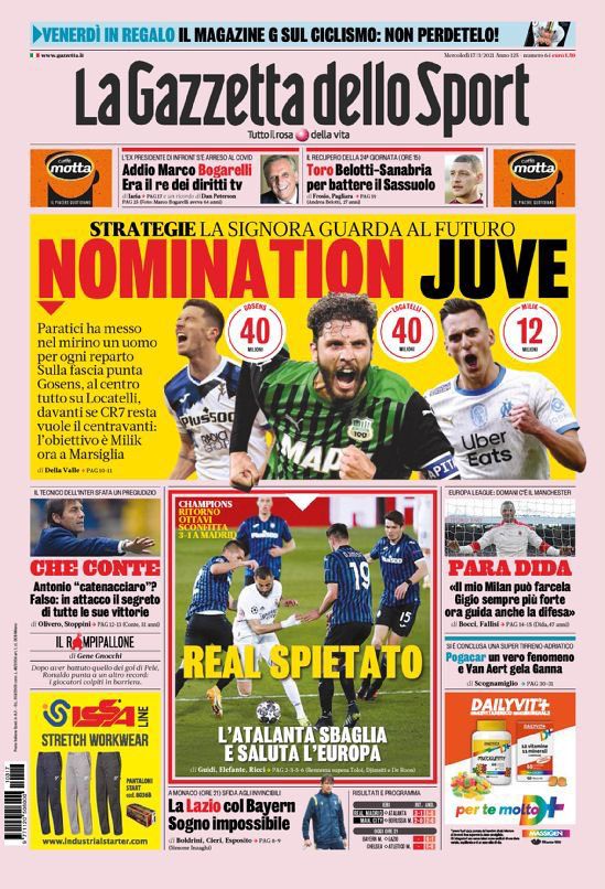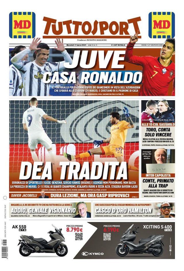 Rassegna stampa Juve: prime pagine quotidiani sportivi - 17 marzo 2021