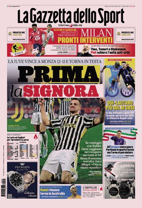 Rassegna stampa Juve: prime pagine quotidiani - 2 dicembre