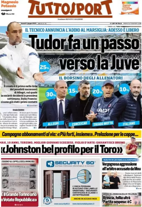 Rassegna stampa Juve: prime pagine quotidiani sportivi – 2 giugno 2023