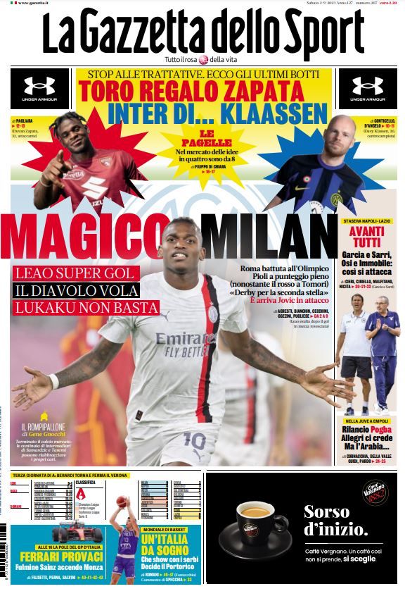 Rassegna stampa Juve: prime pagine quotidiani – 2 settembre