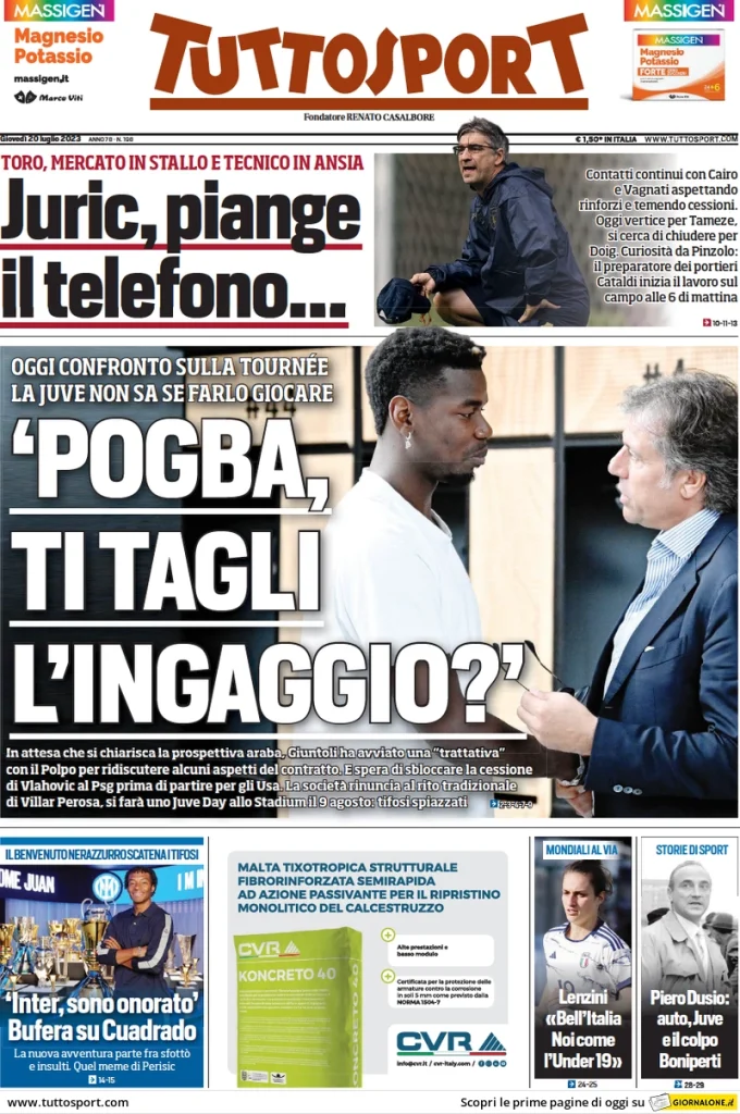 Rassegna stampa Juve: prime pagine quotidiani sportivi – 20 luglio 2023