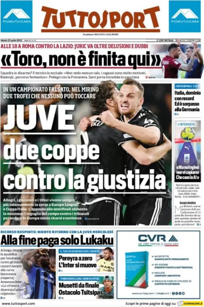 Rassegna stampa Juve: prime pagine quotidiani sportivi – 22 aprile 2023