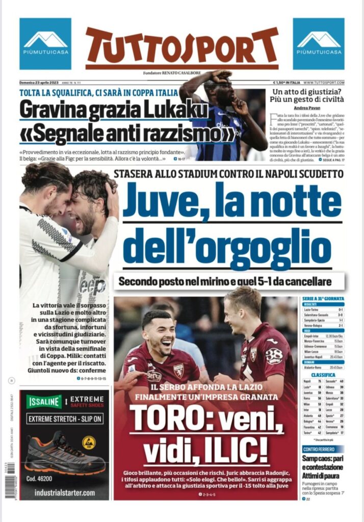 Rassegna stampa Juve: prime pagine quotidiani sportivi – 23 aprile 2023