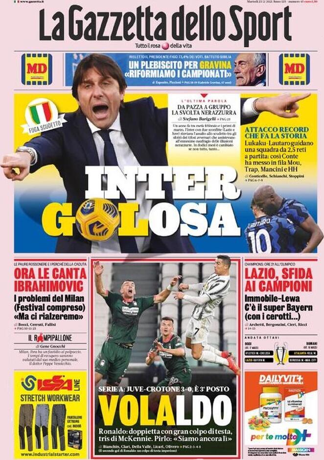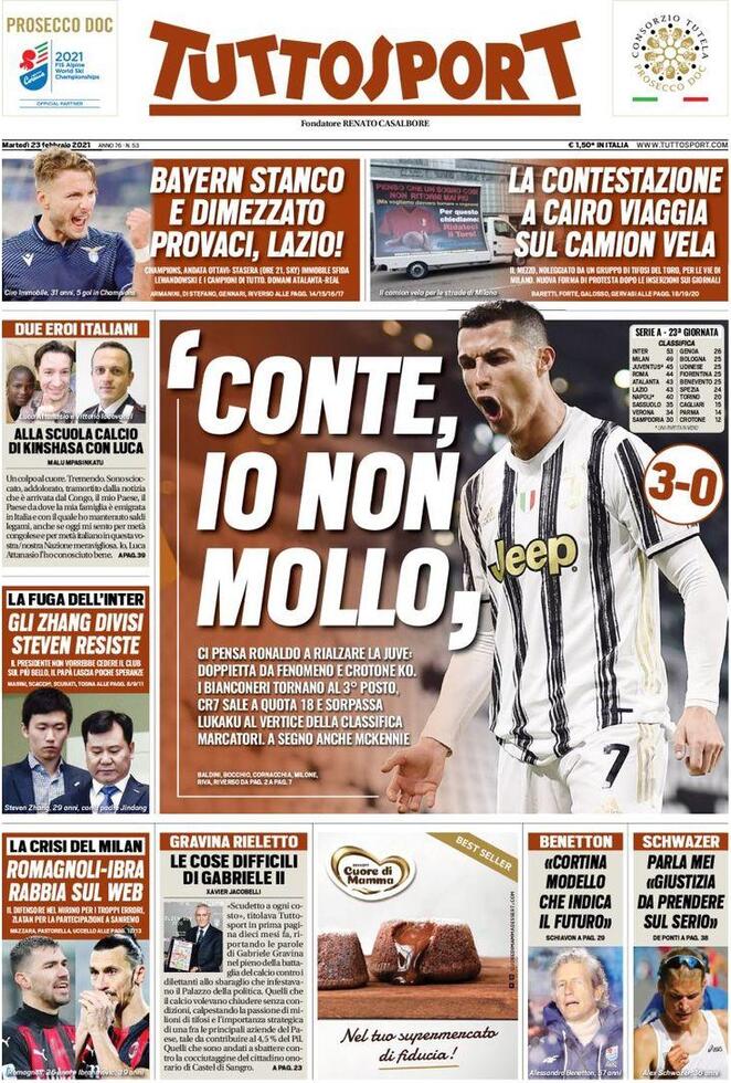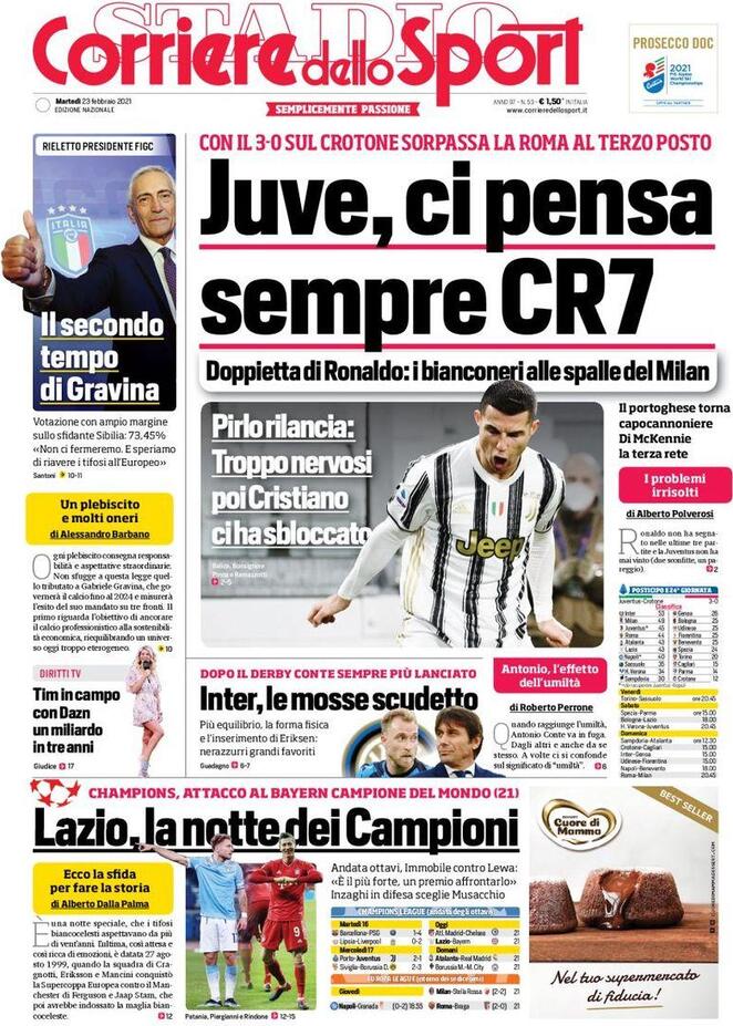 Rassegna stampa Juve: le prime pagine dei quotidiani sportivi italiani ed internazionali di martedì 23 febbraio 2021