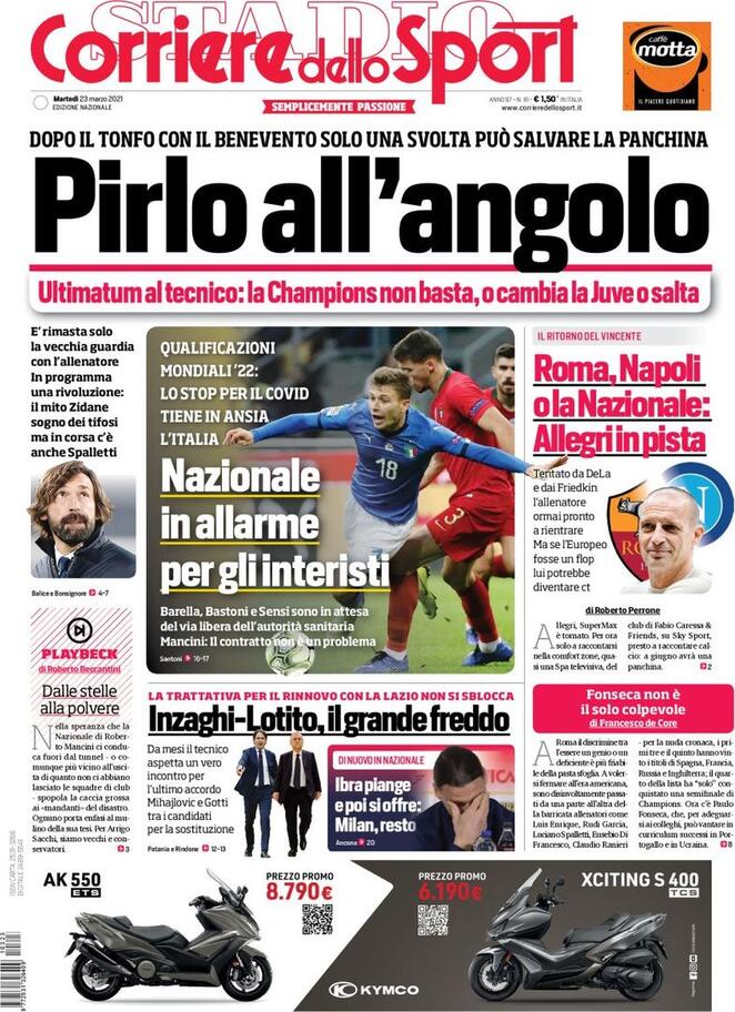 Rassegna stampa Juve: prime pagine quotidiani sportivi - 23 marzo 2021