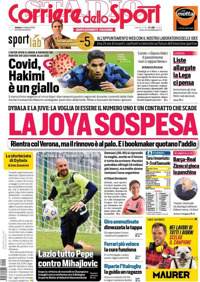 Rassegna stampa Juve: prime pagine quotidiani sportivi – 24 ottobre 2020
