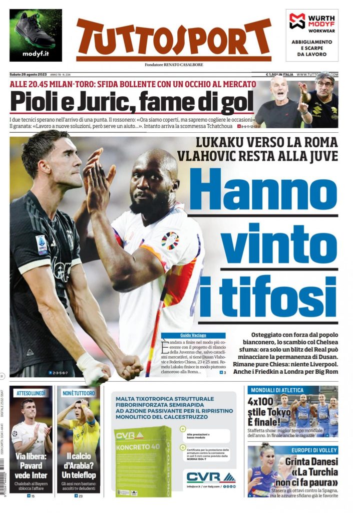 Rassegna stampa Juve: prime pagine quotidiani sportivi – 26 agosto
