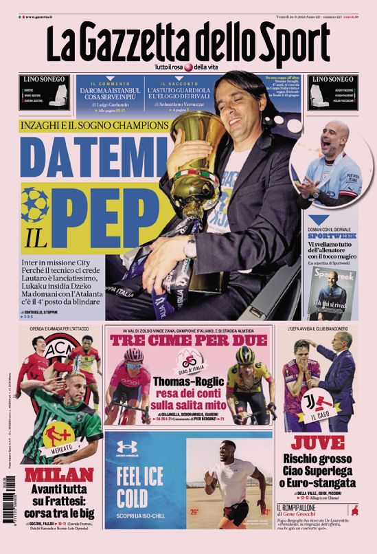Rassegna stampa Juve: prime pagine quotidiani sportivi – 26 maggio 2023