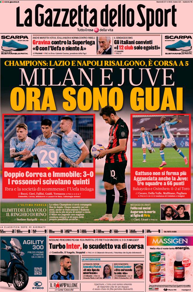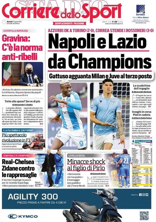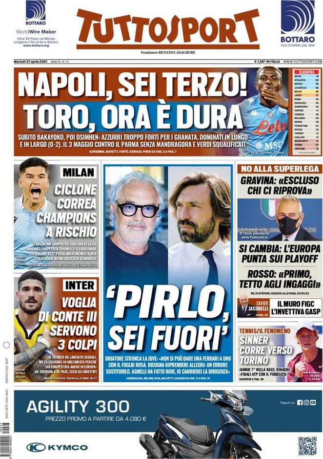 Rassegna stampa Juve: le prime pagine dei quotidiani sportivi italiani ed internazionali di martedì 27 aprile 2021