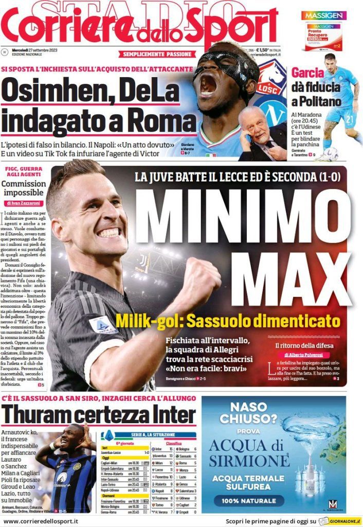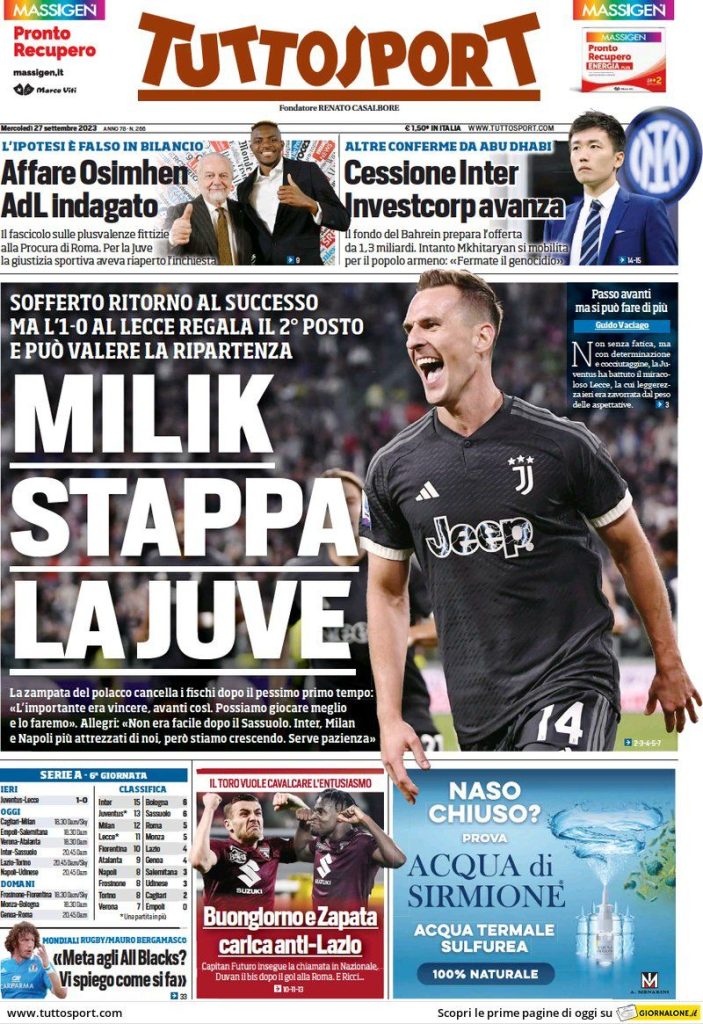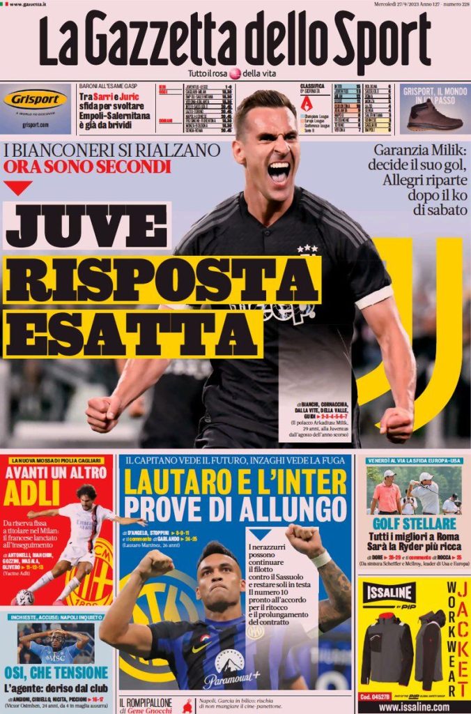 Rassegna stampa Juve: prime pagine quotidiani – 27 settembre