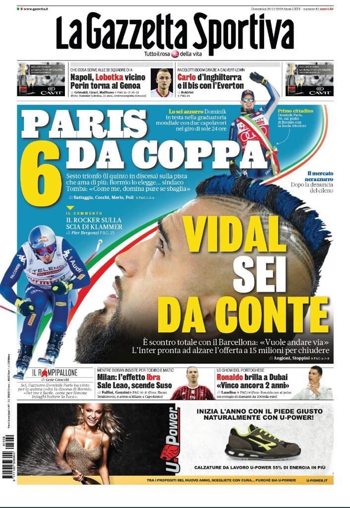 Le prime pagine di alcuni dei principali quotidiani sportivi nazionali ed internazionali.