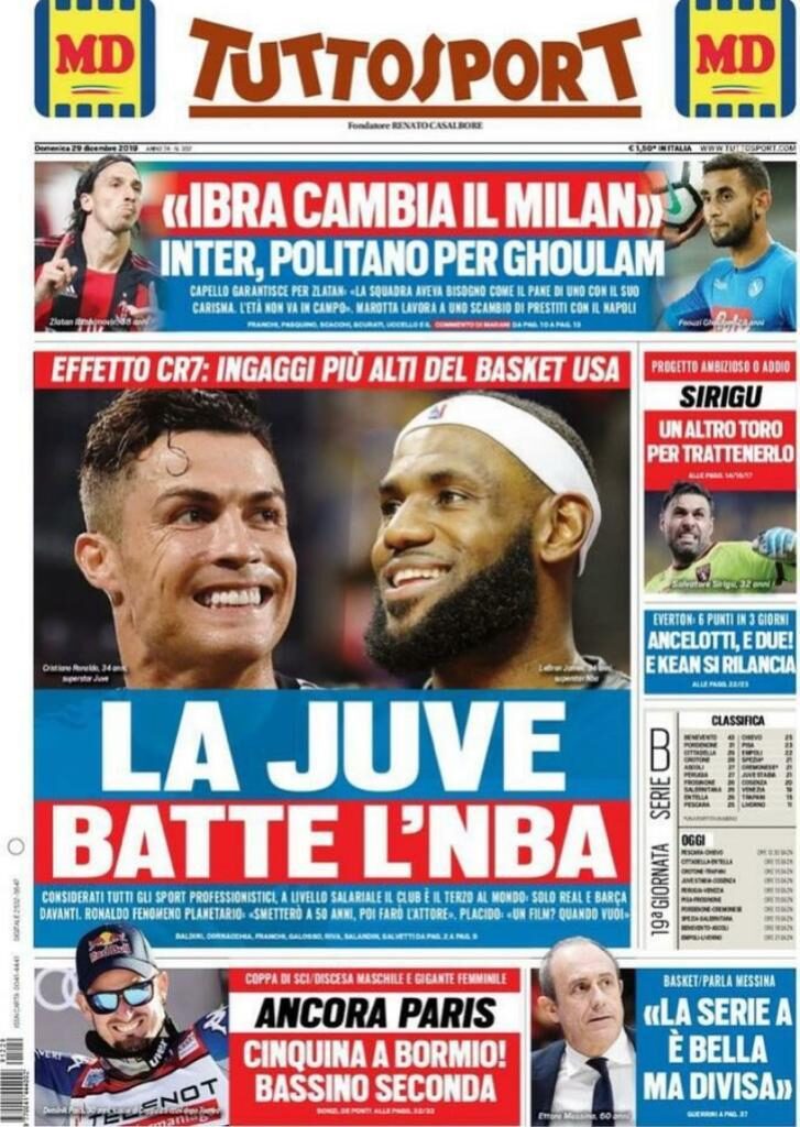 Rassegna stampa Juve: le prime pagine dei quotidiani sportivi italiani ed internazionali di domenica 29 dicembre 2019