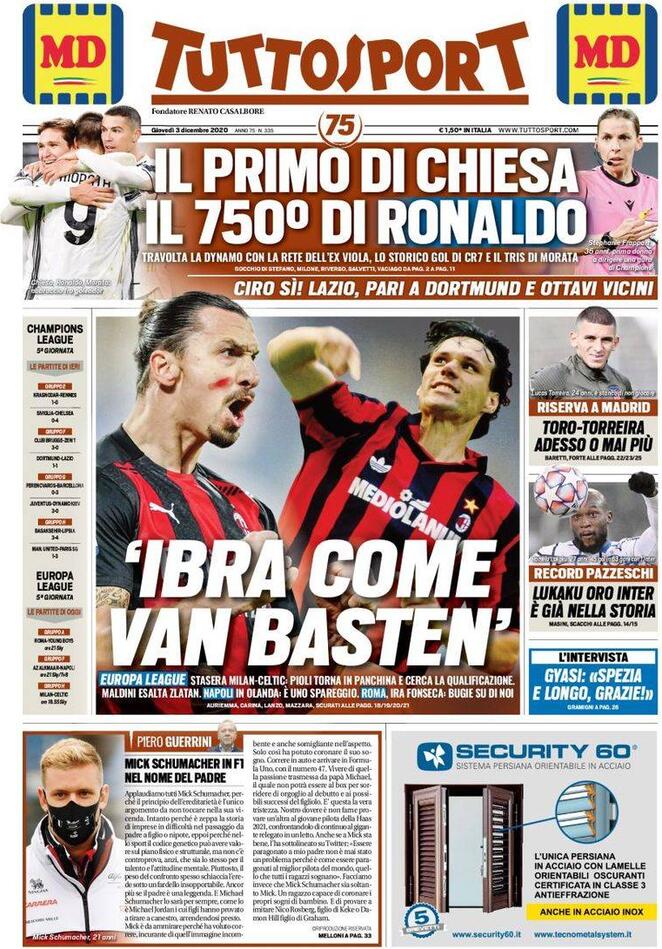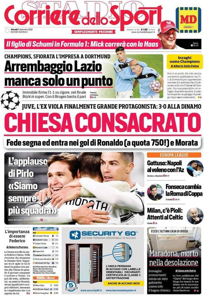 Rassegna stampa Juve: prime pagine quotidiani sportivi - 3 dicembre 2020