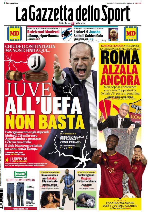 Rassegna stampa Juve: prime pagine quotidiani – 31 maggio 2023