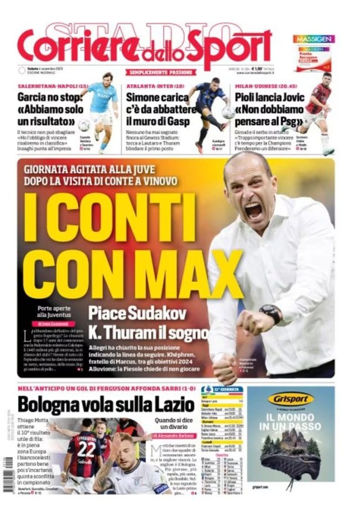 Rassegna stampa Juve: prime pagine quotidiani sportivi - 4 novembre 2023