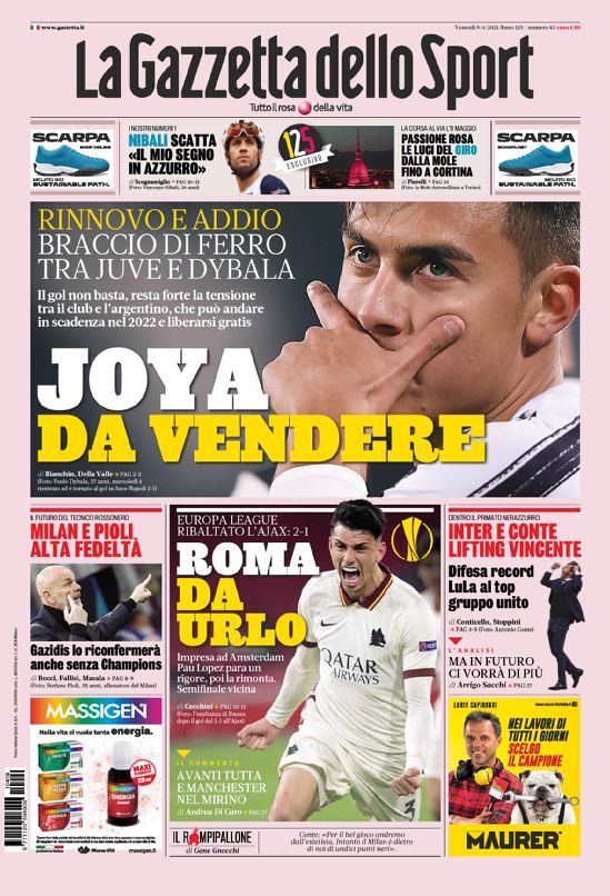 Le prime pagine di alcuni dei principali quotidiani sportivi nazionali ed internazionali.