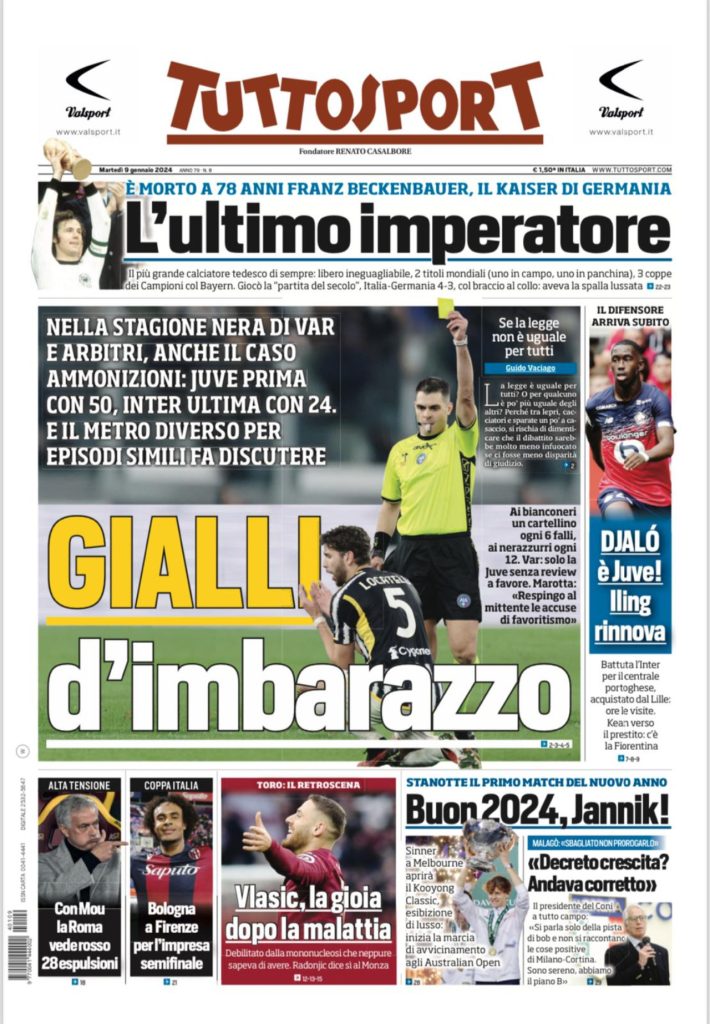 Rassegna stampa Juve: prime pagine quotidiani - 9 gennaio