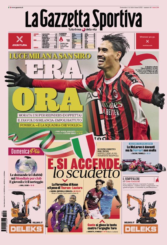 Le prime pagine di alcuni dei principali quotidiani sportivi internazionali in edicola domenica 1 dicembre 2024: in particolare risalto anche la Juve e sul weekend di Serie A.