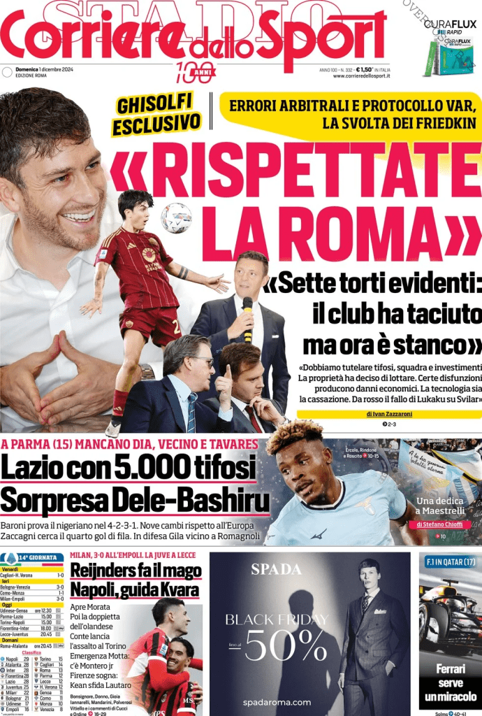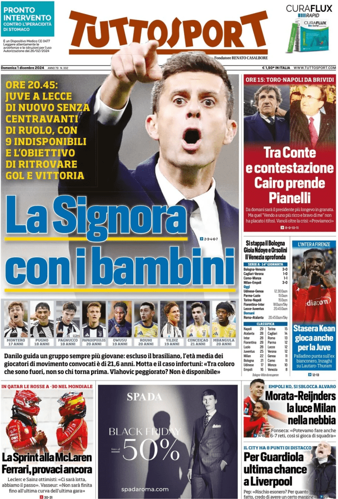 Rassegna stampa Juve: ecco le prime pagine dei principali quotidiani sportivi internazionali di domenica 1 dicembre 2024