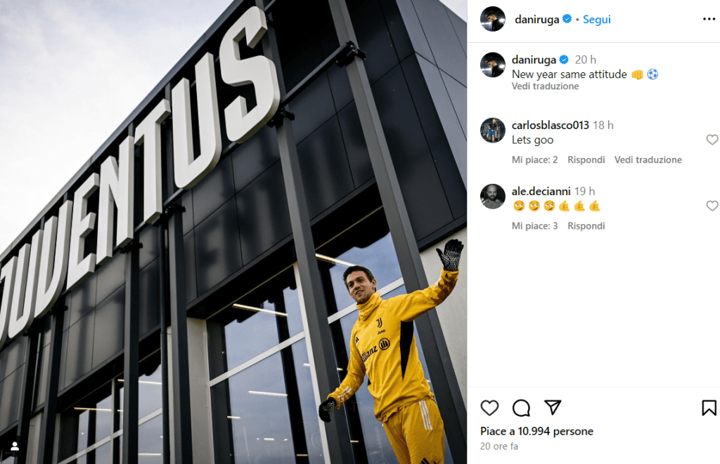 Daniele Rugani, difensore della Juventus, tramite il suo profilo Instagram, ha condiviso una foto che lo vede in allenamento alla Continassa: «New year same attitude» ha scritto il difensore bianconero.
