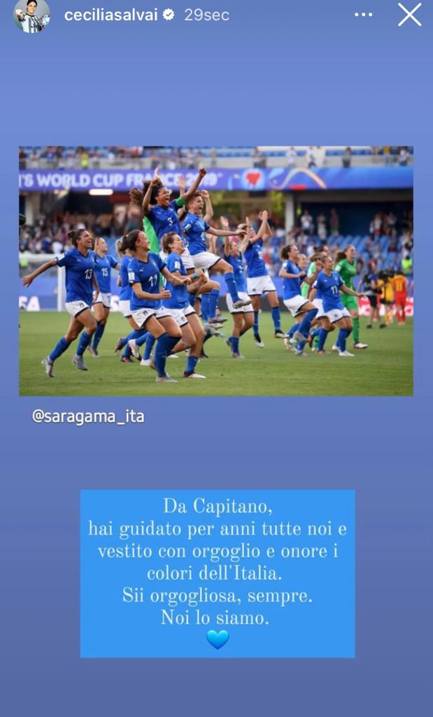 SALVAI SCRIVE A GAMA – «Da Capitano hai guidato per anni tutte noi e vestito con orgoglio e onore i colori dell’Italia. Sii orgogliosa, sempre. Noi lo siamo».