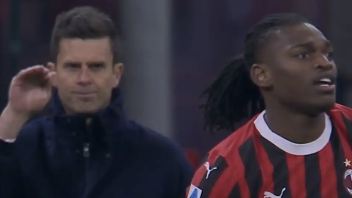 Thiago Motta mima il tuffo di Leao in Milan Juve: poi il portoghese viene ammonito. Cosa è successo